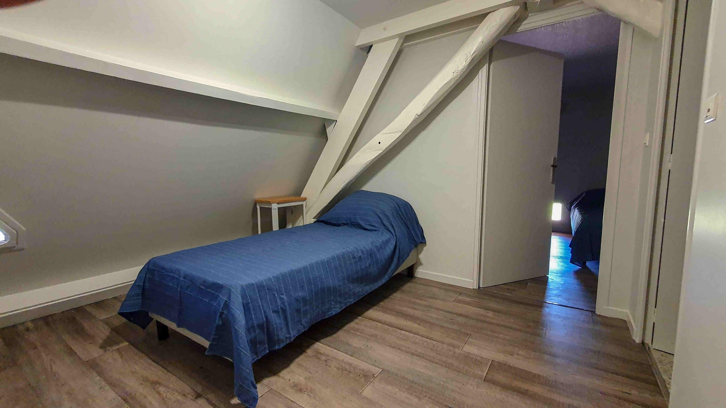 Au 2ème, accès par un escalier étroit, une première pièce palière avec un lit simple (90 x 190), une salle d’eau avec WC et une chambre avec deux lits simples (90 x 190).
